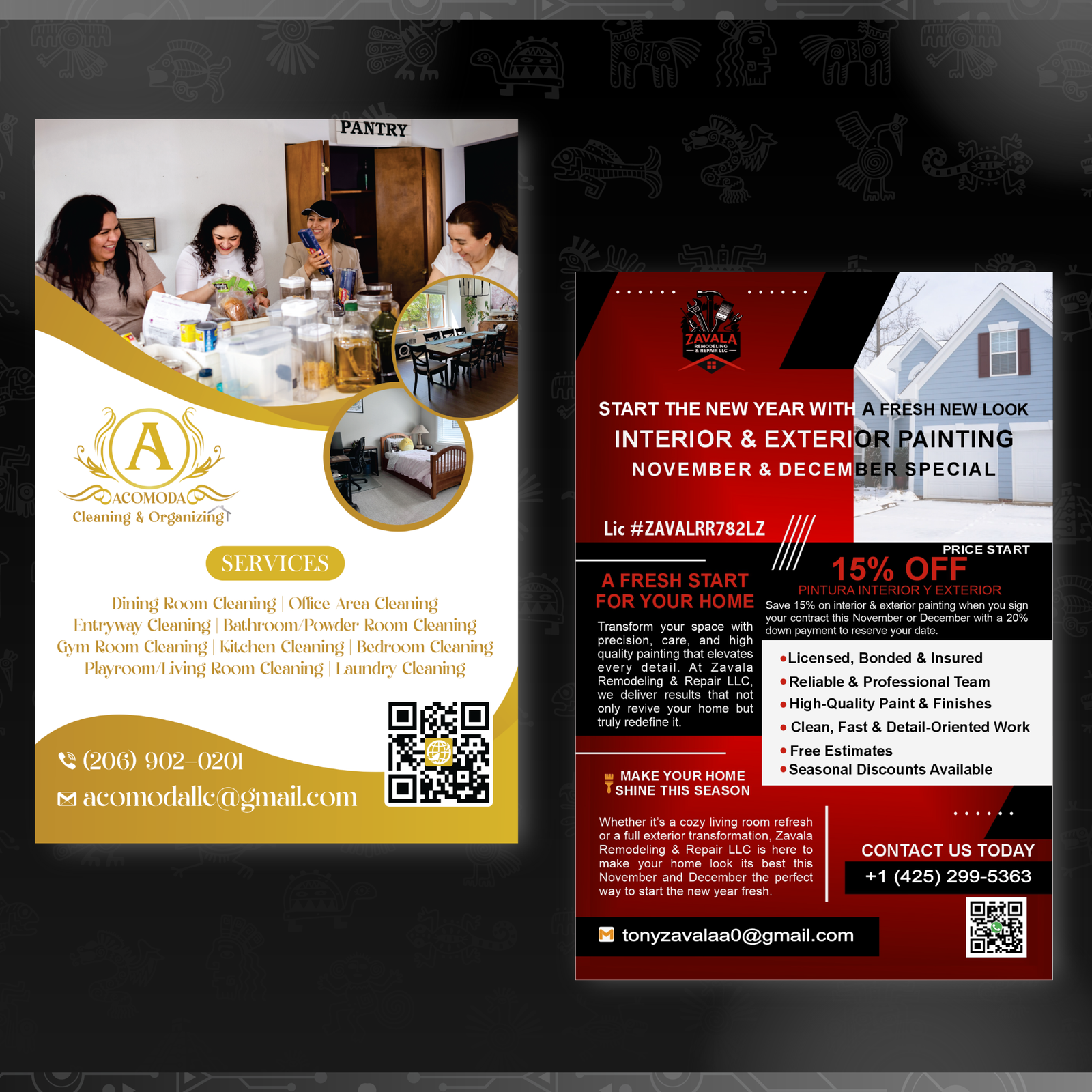 We take care of layout, typography, colors, branding consistency and revisions, so you can focus on promoting your business while we deliver a polished, ready-to-use flyer.