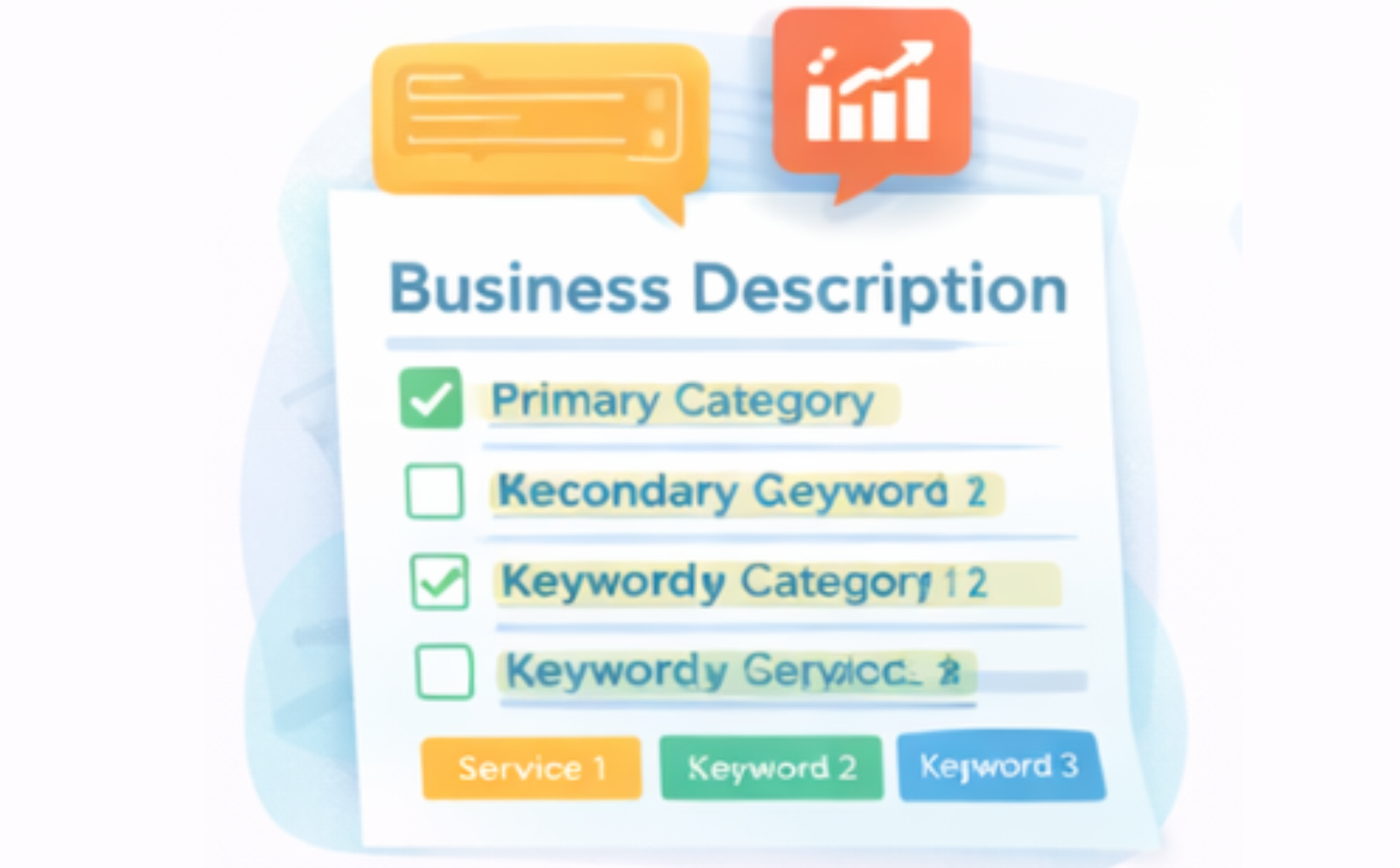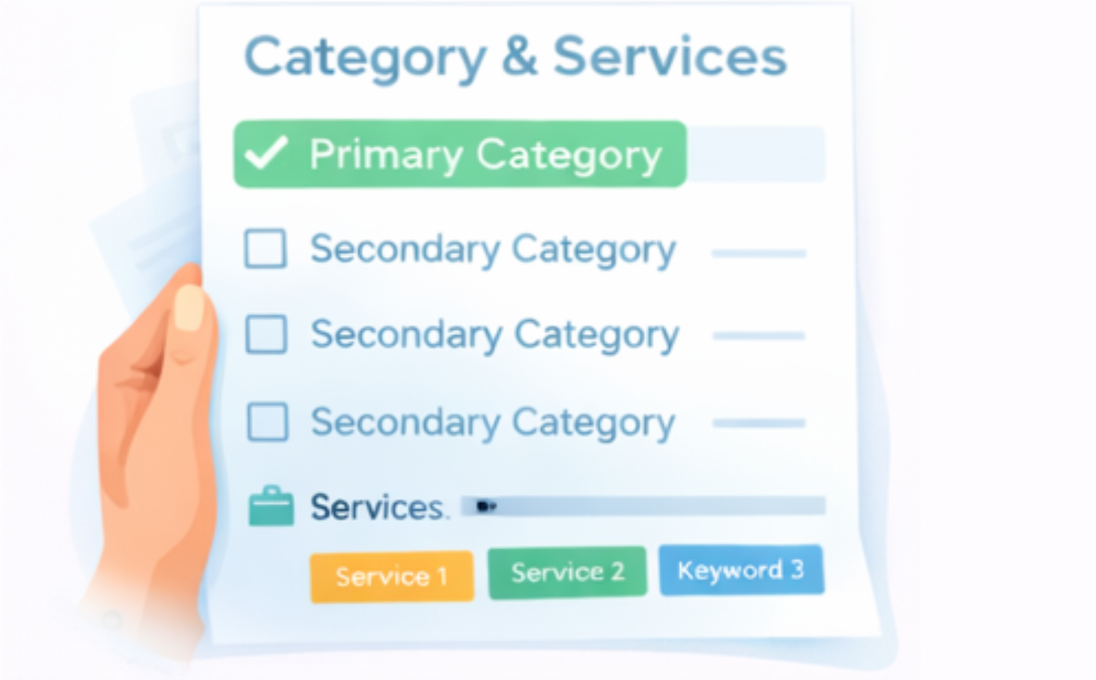We optimize categories, descriptions, services, location data, and visibility settings.