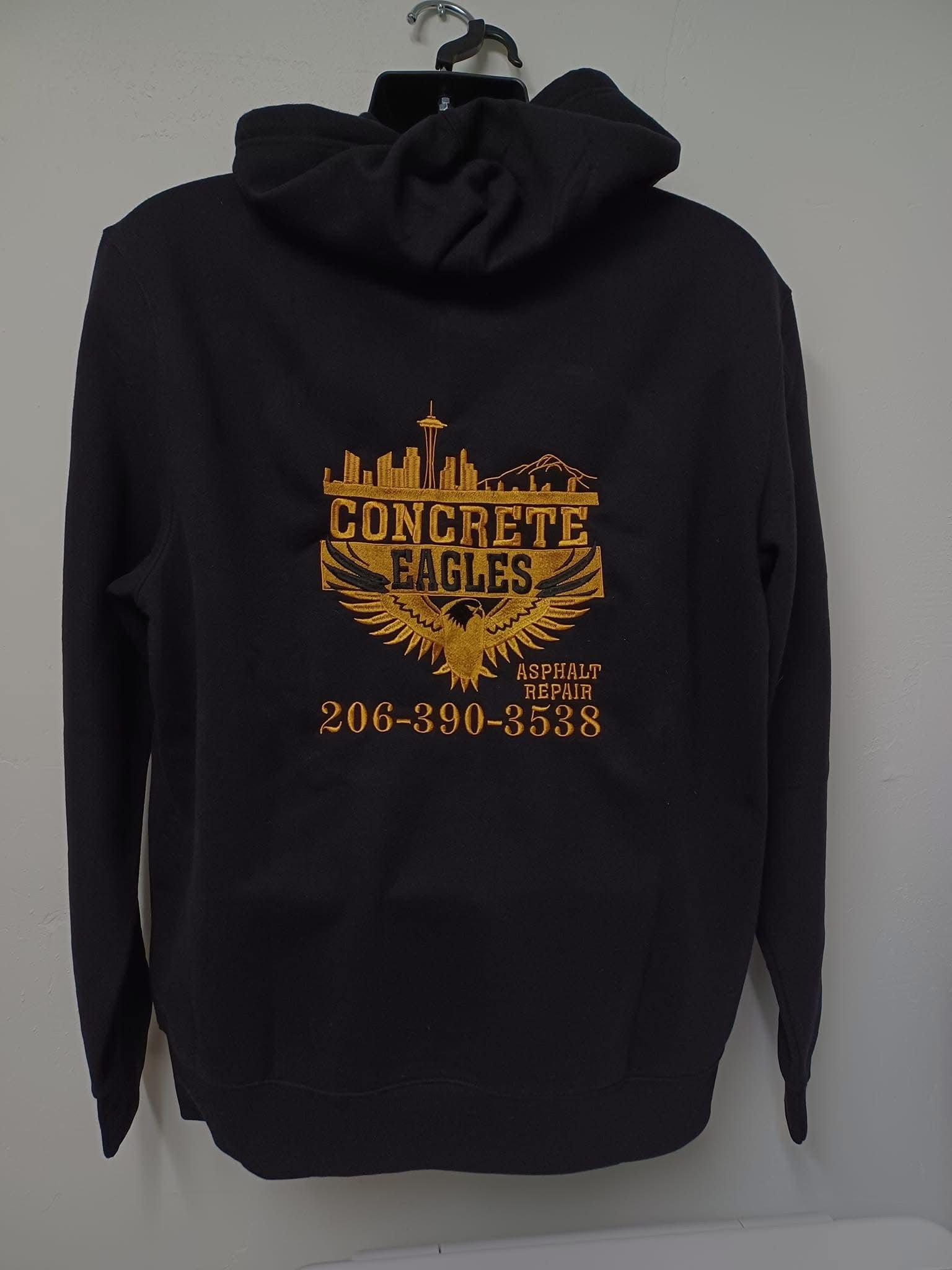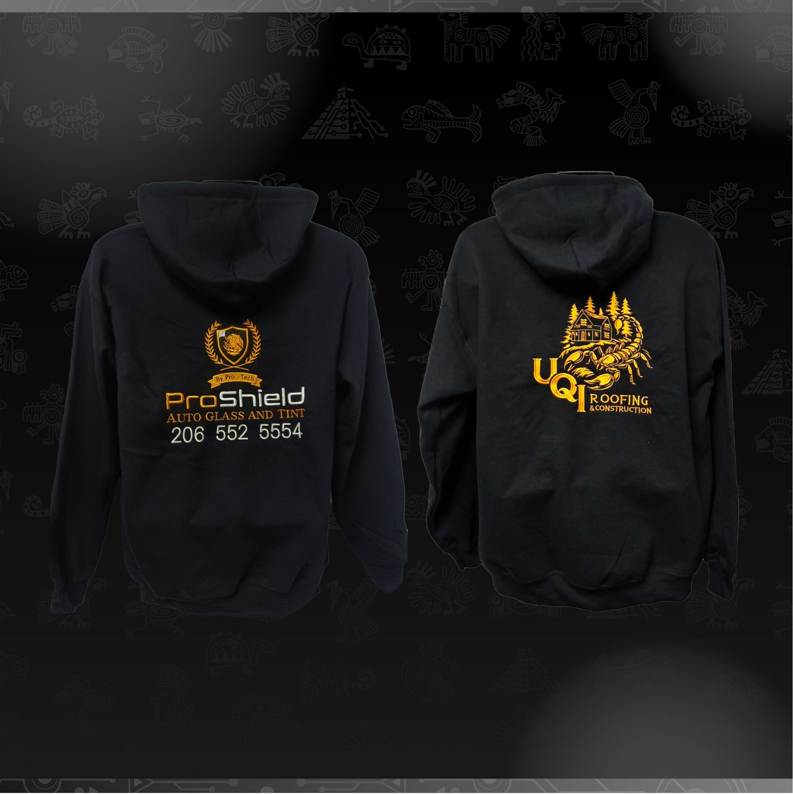 High-quality hoodie with professional embroidery on the front and back. Perfect for workwear, branding, and everyday use.
